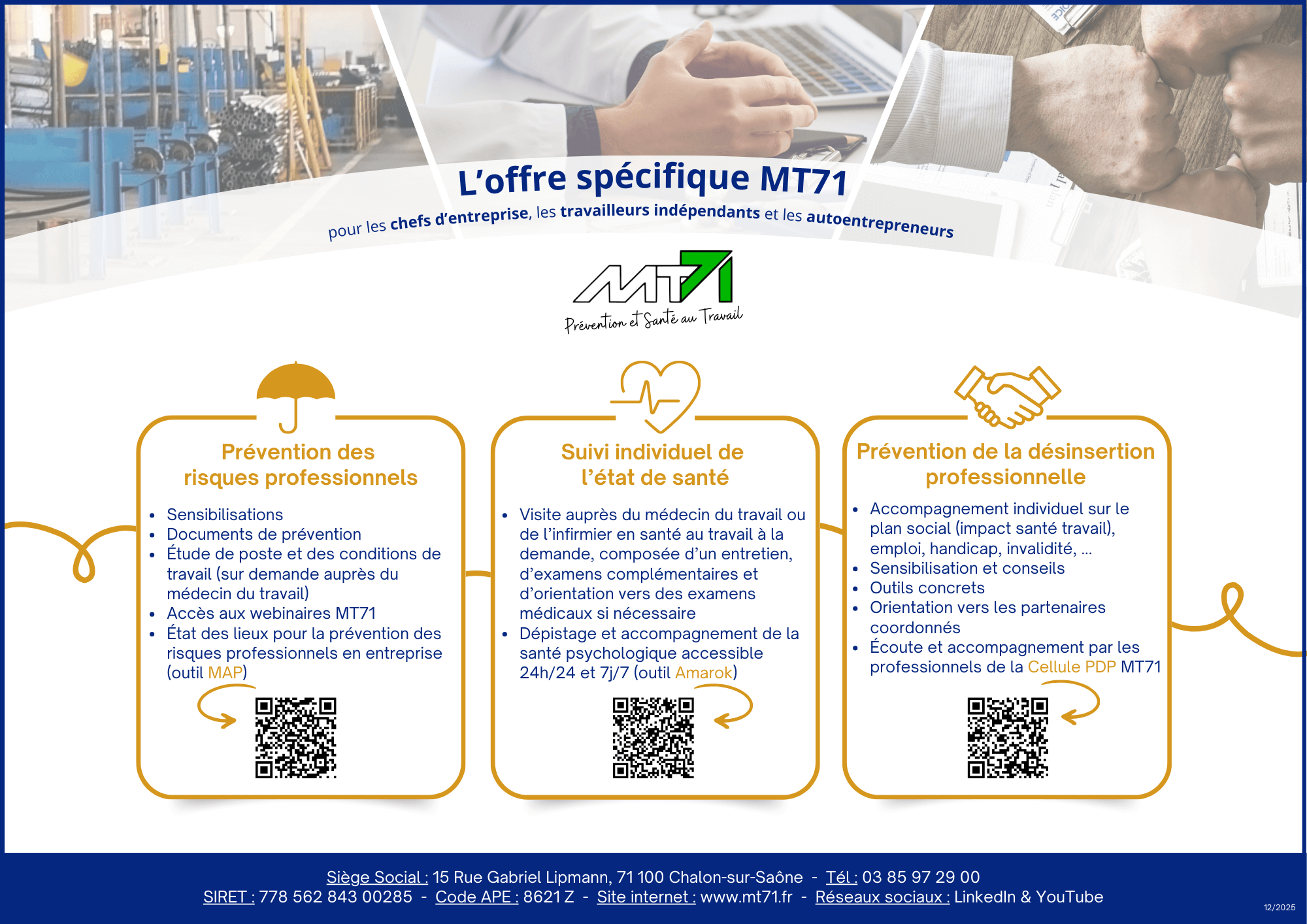 - Un accès aux webinaires organisés par MT71, tant sur la prévention des risques que sur l’hygiène de vie, ainsi qu’à des ateliers de Co-développement