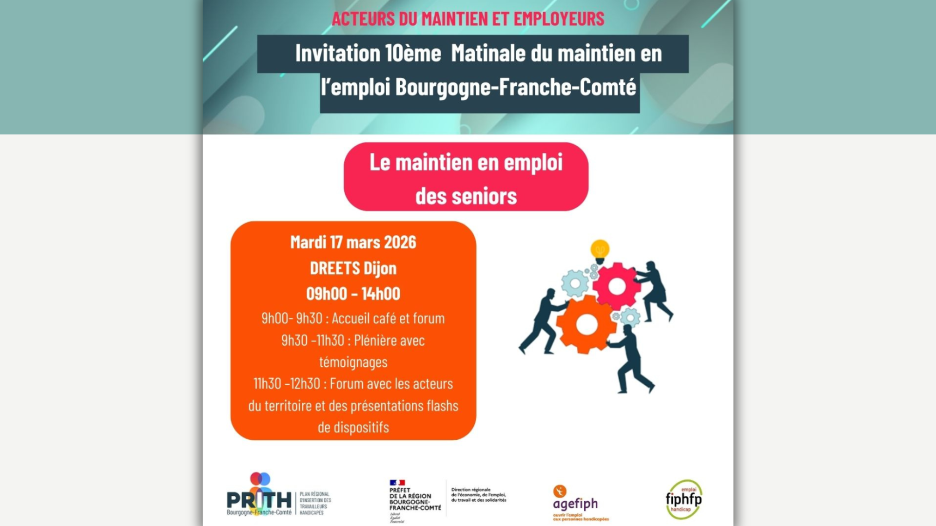 Nous vous relayons l’invitation du PRITH, pour sa Dixième édition de la Matinale du Maintien en Emploi en Bourgogne-Franche-Comté.
